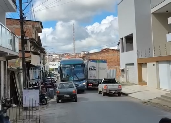 Gandu: Ônibus trafega na contramão na Avenida Orlando Pitágora e causa engarrafamento nesta quinta (19)