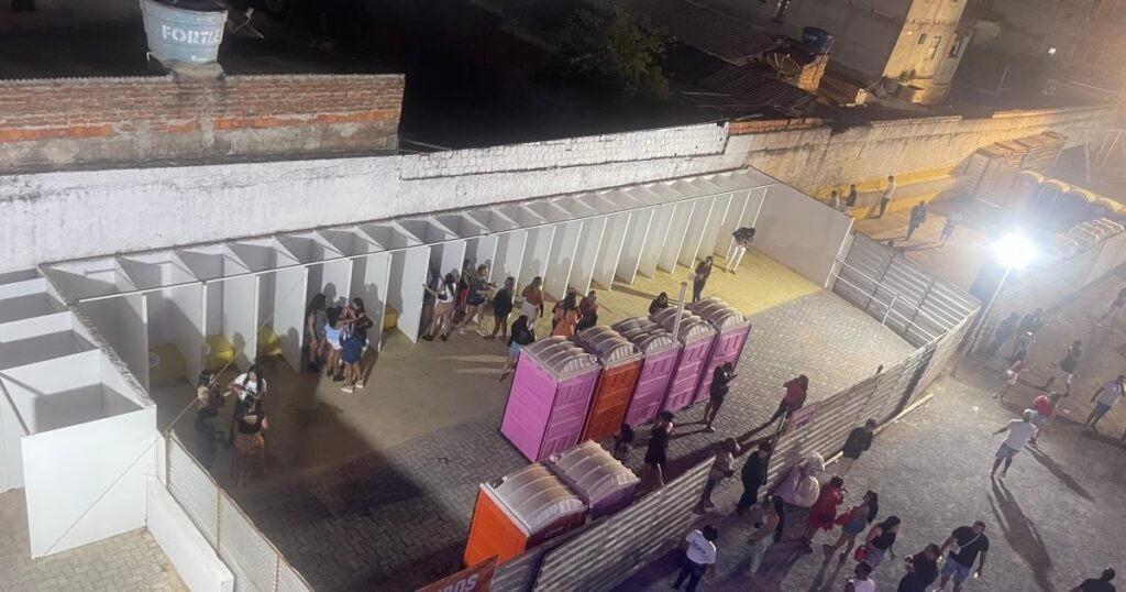 “Enquanto o prefeito está no palco e no camarote, com banheiros exclusivos, aqui estamos nós, sendo obrigadas a utilizar esse banheiro? Totalmente expostas”, declarou uma moradora, expressando sua indignação com a falta de privacidade.